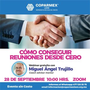 Webinar gratuito: Cómo conseguir reuniones desde cero. COPARMEX 👉🏻 Coparmex ZM de León a través de su representación en la Zona del Rincón te invitan…