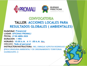 Fotografías del Taller Acciones Locales para Resultados Globales Ambientales Hoy de realizó el Taller impartido por la Procuraduría Ambiental del Estado de GTO, con el…